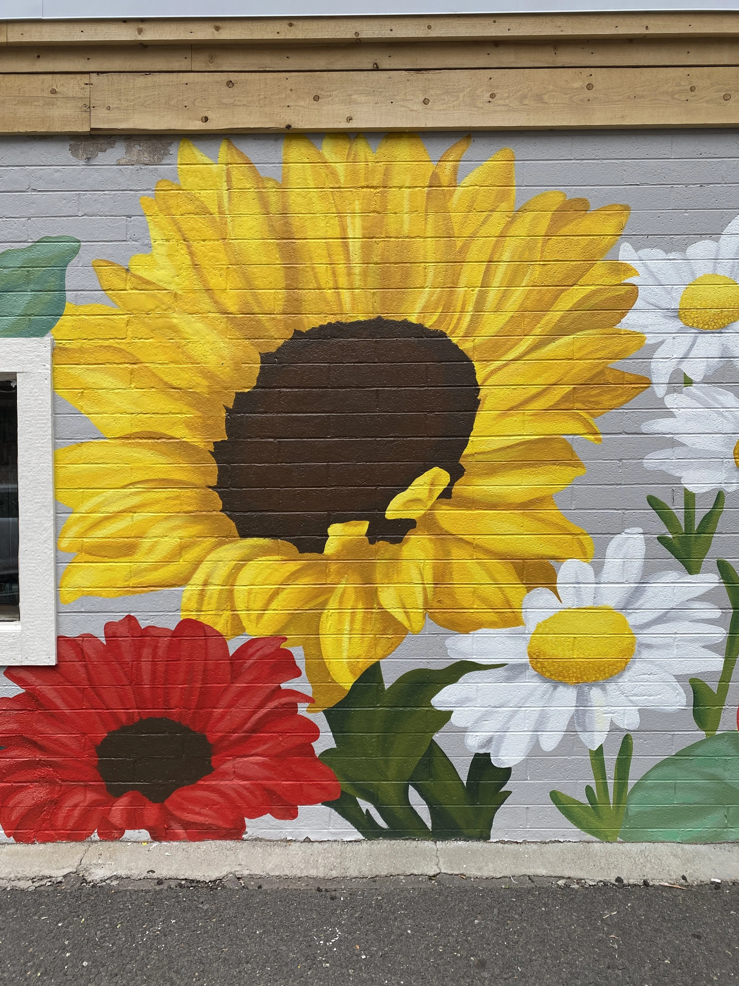 This project remains one of our all-time favorites. Throughout the painting process, we were moved by the community’s enthusiasm—from kind words and photos to the two kids who helped us with the sunflower (their names are hidden in our signature). We hope this mural brings as much joy to Flagstaff as Sutcliffe has over the decades.