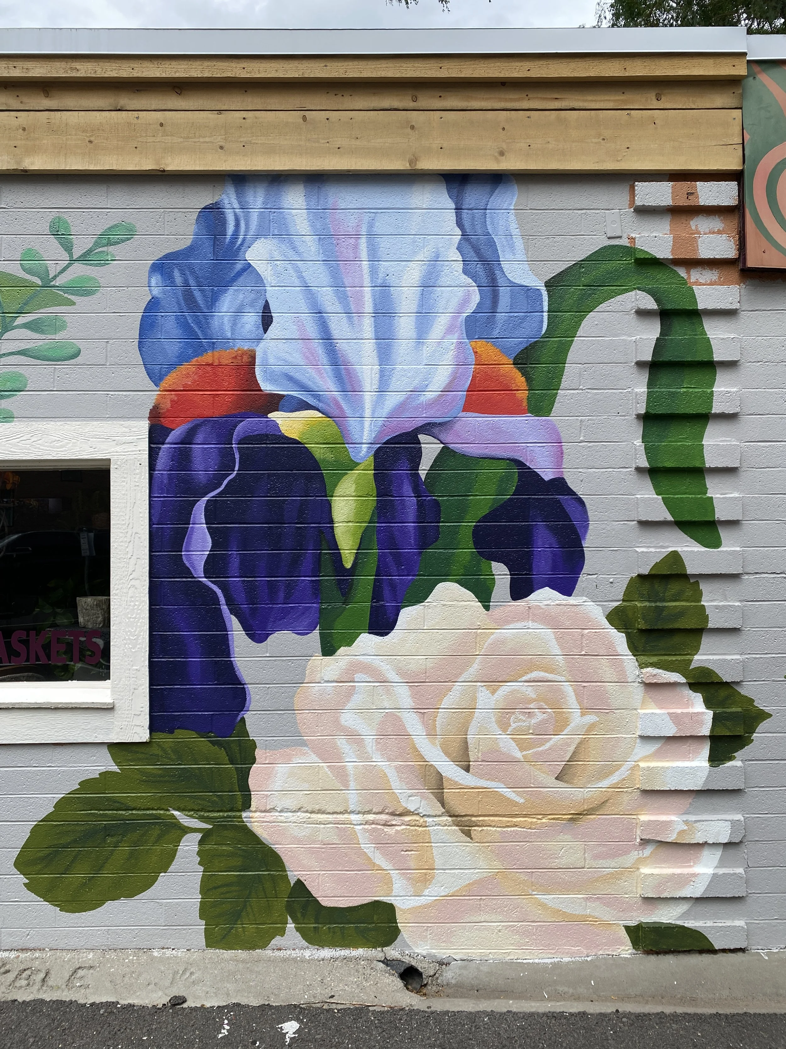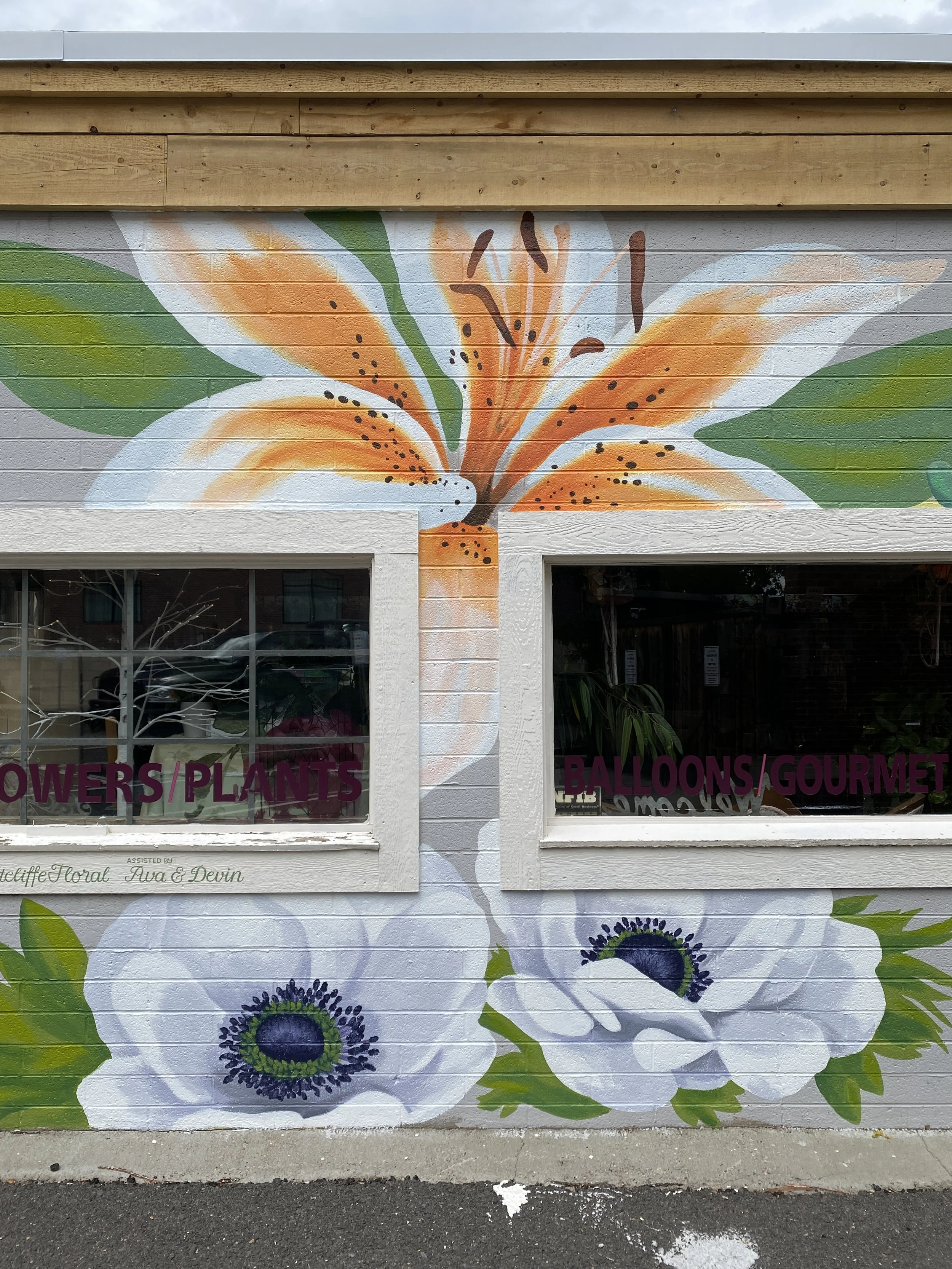 The mural features flowers commonly found in their arrangements—each one carefully chosen with intention and love.